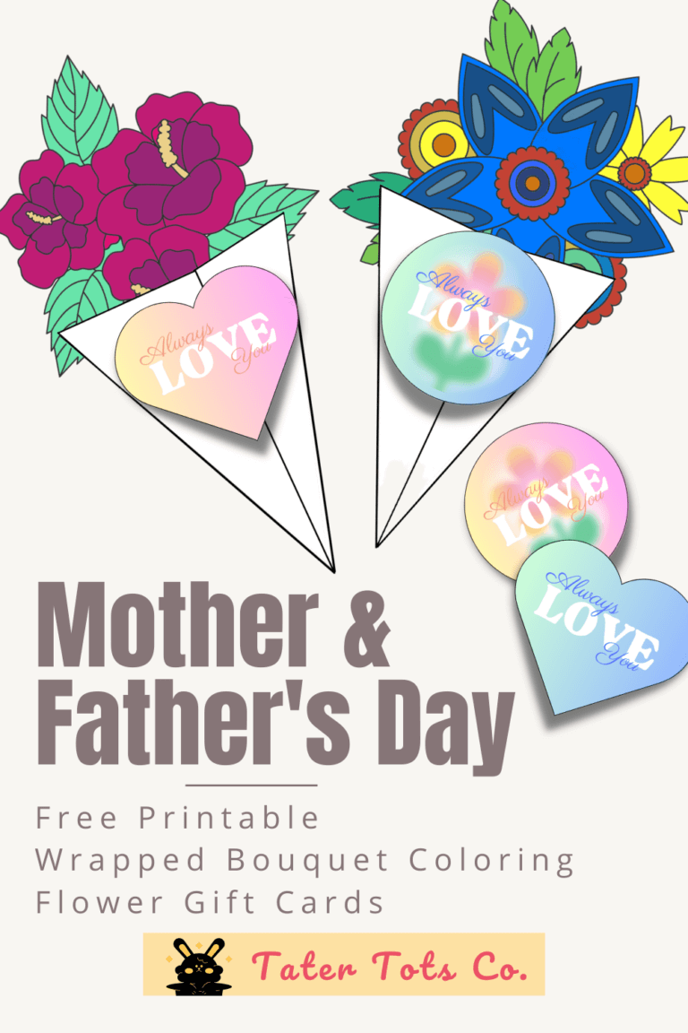 Free Printable Wrapped Bouquet Coloring Flower Mother’s day Gift Cards